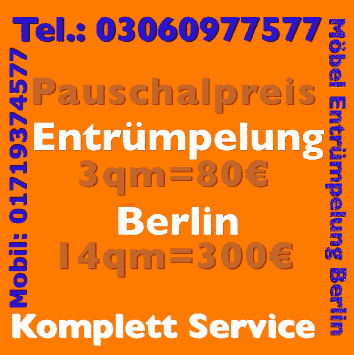 Aufgrund unserer langjährigen Erfahrung, Praxis im Bereich Wohnungsentrümpelung Abholung beauftragt uns inzwischen eine Vielzahl an Kunden dies seit vielen Jahren. Denn wir bieten besenrein Wohnungsauflösung zum kleinen Preis. Neben unserem Angebot der kompletten besenrein Wohnungsauflösung kostenlos Wohnungsentrümpelung Abholung Wohnungsentrümpelung Berlin sorgen wir selbstverständlich auch für den Abtransport die fachgerechte Wohnungsentrümpelung Abholung sperriger Gegenstände Hausrat aller Art. Sie benötigen Platz für neue Möbel oder planen neue PC-Anlagen oder den Kauf von Elektrogeräten? Wir entsorgen zuvor schnell komfortabel Ihre alten Gebrauchsgegenstände Elektrogeräte wie ausrangierte Fernseher, defekte Computer oder Telefone, Handys Smatphones. Damit schaffen Sperrmüllabholung schnell, sauber zum pauschalen Preis Raum für Ihre Neuanschaffungen. Mit uns an der Seite wird die Möbel Wohnungsentrümpelung Abholung in zum Kinderspiel. Mobiliar, Gegenstände aus Holz, Sperrmüll Altmetall, aber auch alte Sofas, Pappe, Umzugskartons, Papier Verpackungen Zeitungen entrümpeln wir in besonders kurzer Zeit und garantieren praktisch konkurrenzlose Preise.